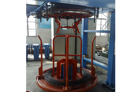 倒立式收线机适用于热处理后的大盘重收线,不锈钢丝退火后的收卷、光亮拉拔及铅淬火钢丝和镀锌钢丝的大盘收卷。机台特点:连续化生产、收线盘重大、一级皮带组合摆线针轮减速机传动、交流变频控制、平滑无级调速。